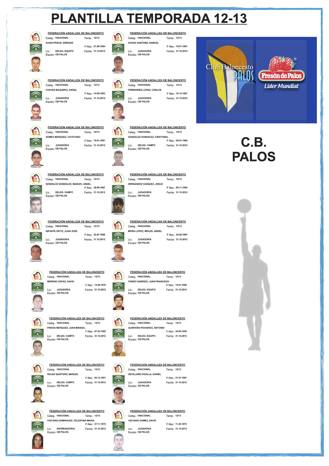 Plantilla Club Baloncesto Fresón de Palos 2012-2013...fuente: Federación Andaluza de Baloncesto